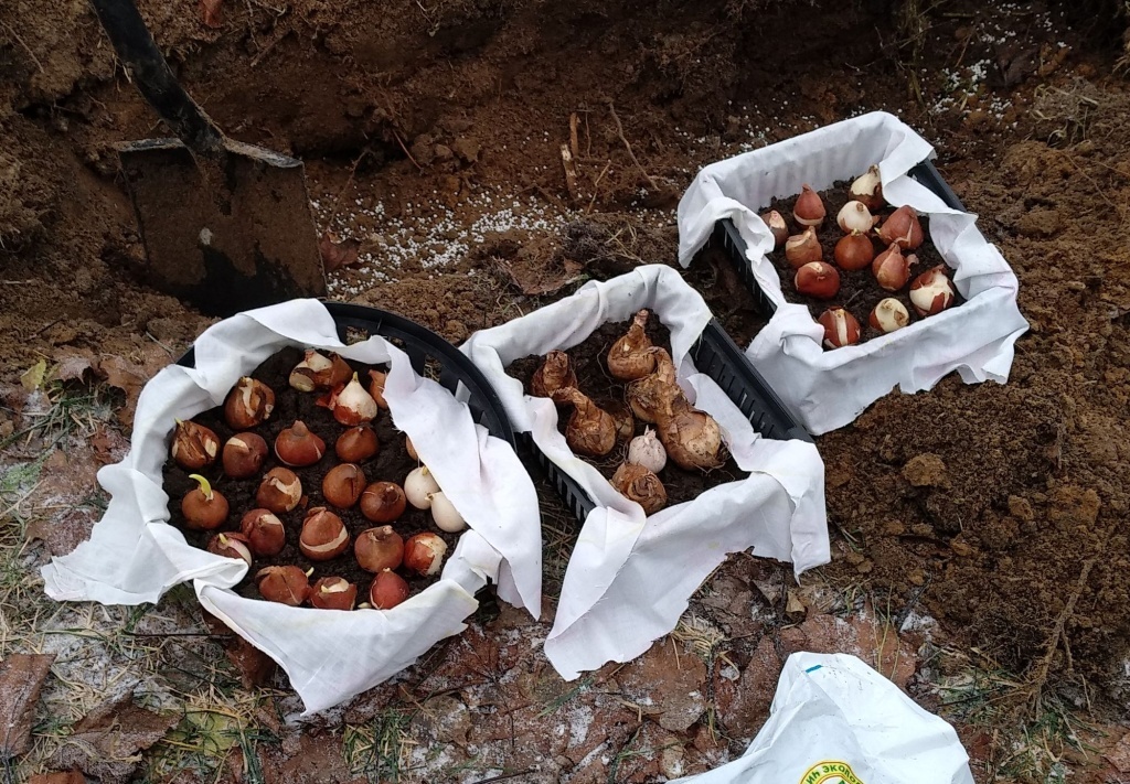 Преимущества посадки луковичных в корзинах очевидны: