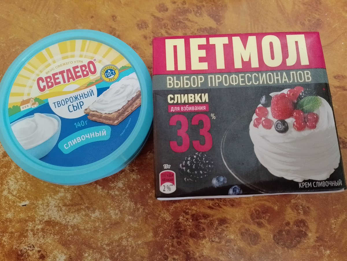 Пока коржи остывают, можно заняться кремом. В отдельной миске тщательно взбиваются сливки с сахарной пудрой, а затем к ним добавляется творожный сыр. Все ингредиенты необходимо взбивать до получения гладкого, воздушного крема.