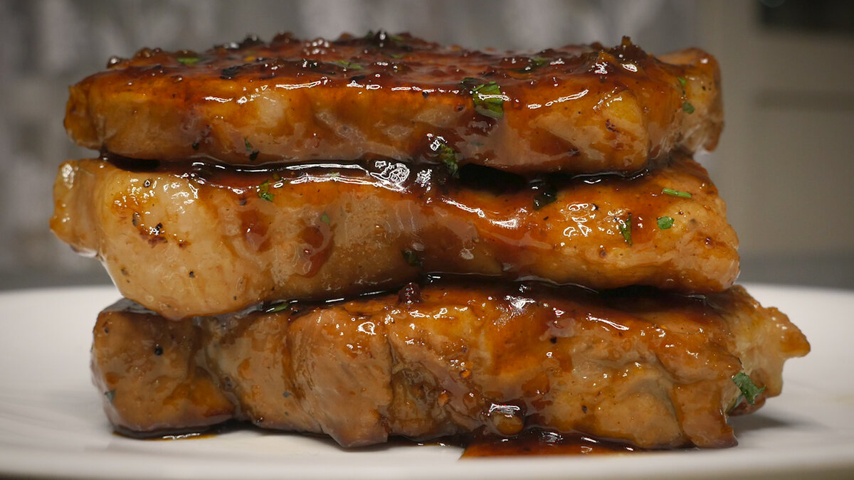 Самое важное в этом рецепте — это скорость и внимание. Обжарьте свинину на сильном огне до золотистой корочки снаружи, но не дожаривайте до полной готовности. Затем, на среднем огне быстро обжарьте чеснок, добавьте все ингредиенты для соуса и продолжайте помешивать, пока он не загустеет и не приобретет карамельный оттенок. Когда соус начнет пузыриться, можно добавить мясо. Жарьте по 2-3 минуты с каждой стороны, поливая соусом, пока он не станет еще более густым и ароматным.