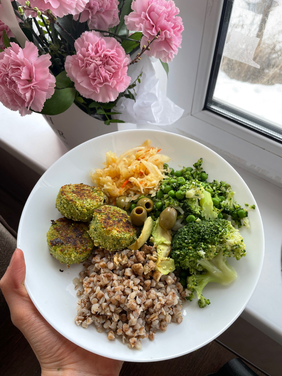 - Овощная основа: тушеные брокколи, квашеная капуста, авокадо.