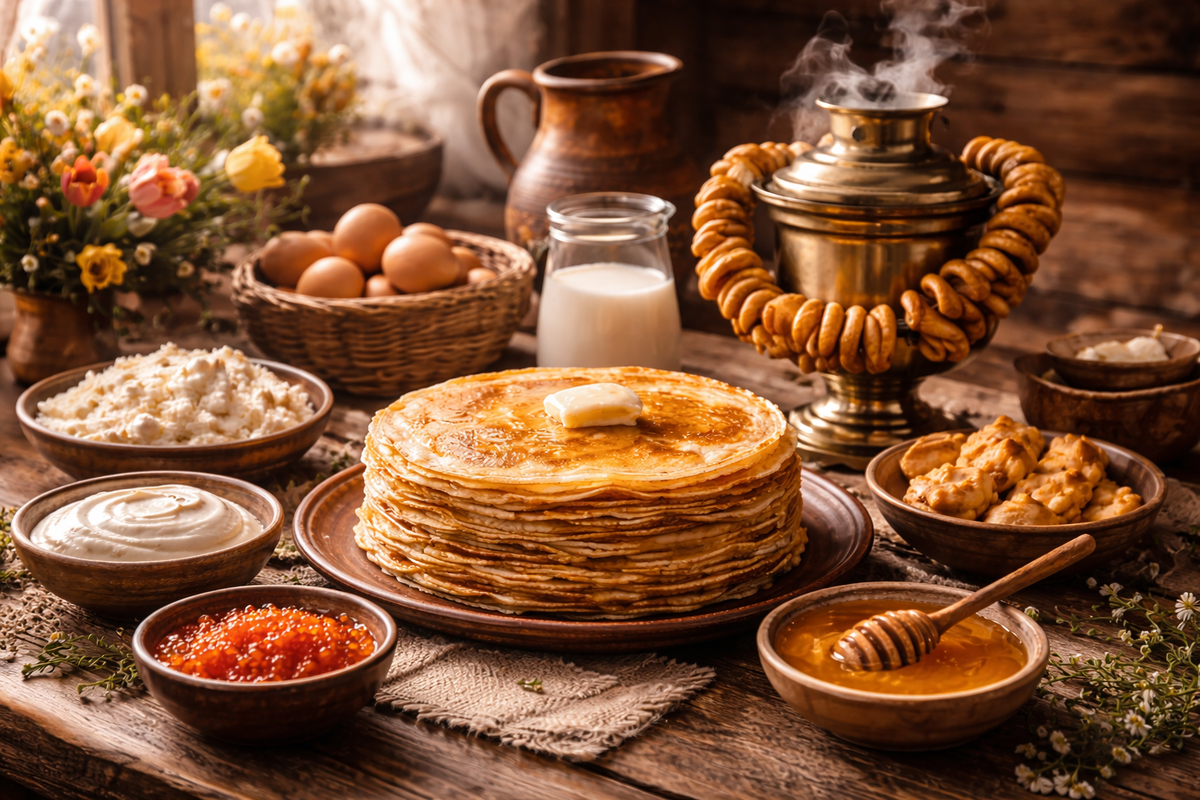 Таким образом, блины, сметана и творог становятся краеугольными камнями праздничного стола.
