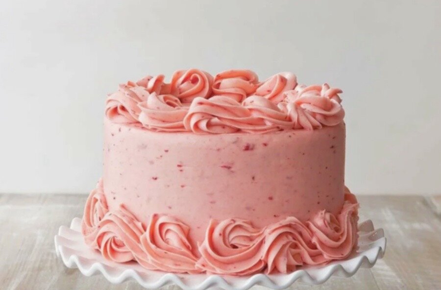Клубничный бисквит, пропитанный сладким сиропом, нежный клубничный курд на каждом уровне и великолепный крем — это сочетание, которое сводит с ума любого гурмана.