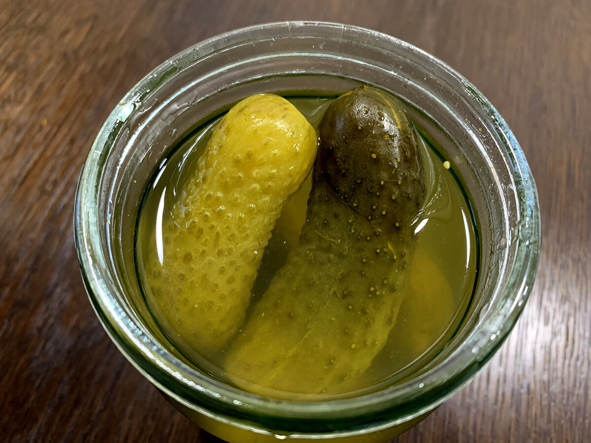 Вот рецепт, в котором можно спасти баночку с слишком кислым содержимым. Всё, что нужно сделать, это добавить немного сахара. На литровую банку обычно идет 1-2 столовые ложки, но в этом случае, учитывая, что после рассольника осталось всего 0,5 литра огурчиков, подойдет неполная ложка.