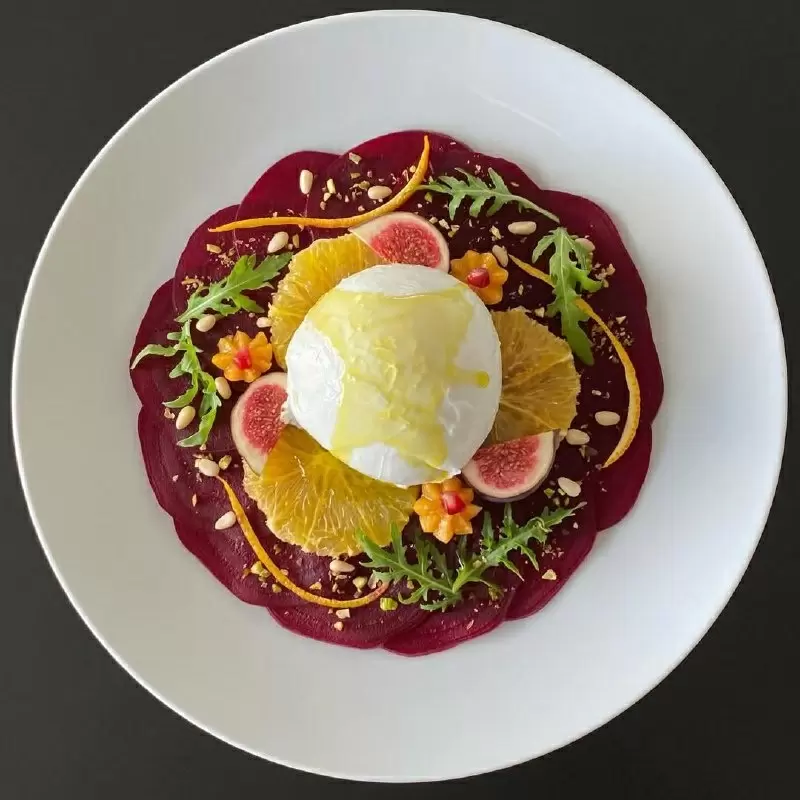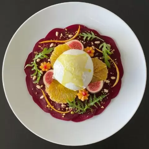 Новая выдающаяся закуска, получившая название "Карпаччо из свеклы с бурратой", уже становится хитом гастрономического мира. Яркие цветовые контрасты и непревзойденные вкусовые сочетания привлекают внимание гурманов и диетологов.