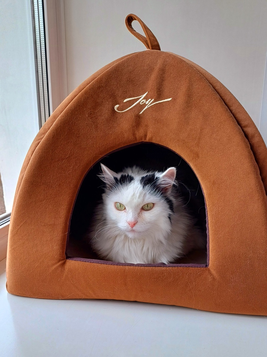С не слишком довольным выражением на лице, Снежа перебралась в свою комнату и устроилась в своём уютном домике на подоконнике. Её новое укрытие стало местом, где она могла спокойно наблюдать за происходящим в доме. Сточив взгляды на улицу, кошка с любопытством следила за птицами и прохожими, внимательно высматривая каждый мимолетный миг.