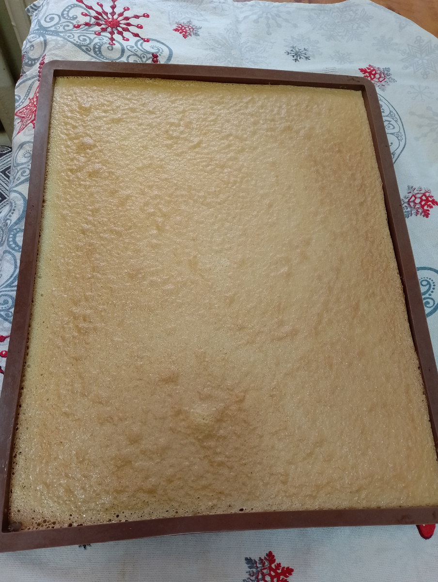 Когда бисквит будет готов, немедленно сверните его в рулет, используя бумагу для выпечки. Это поможет сохранить форму во время остывания.