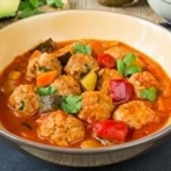 4. В последнюю очередь добавляем фрикадельки и нарезанный цуккини. Перемешиваем и тушим еще 20 минут. Подавайте горячим, посыпав нарубленной кинзой и, по желанию, авокадо.