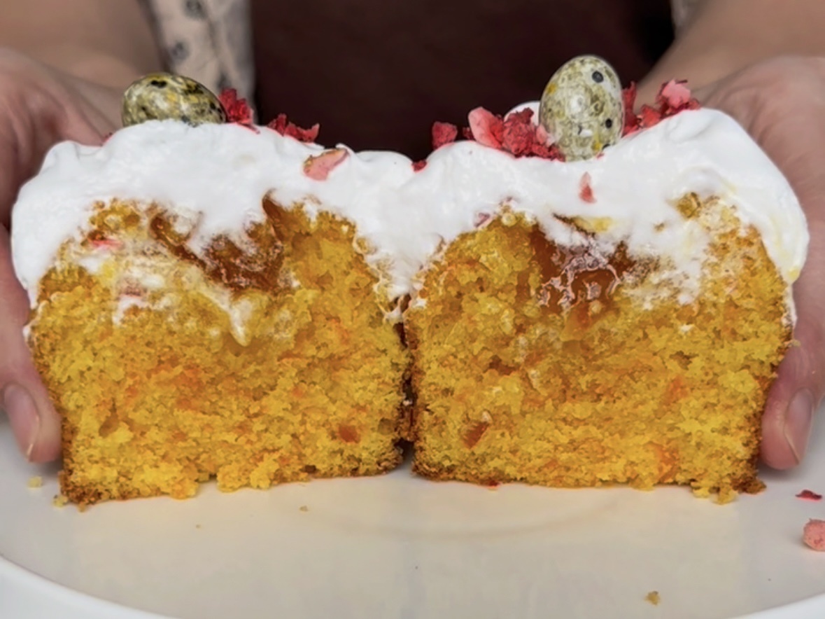 Когда кексы остынут, аккуратно сделайте небольшие отверстия в центре и наполните их любимым джемом — апельсиновый идеально подойдет. Для глазури белки рекомендуется взбивать с сахаром на водяной бане, пока не образуются устойчивые пики. Затем наносим глазурь на куличи и оставляем на 80°C в духовке до высыхания.