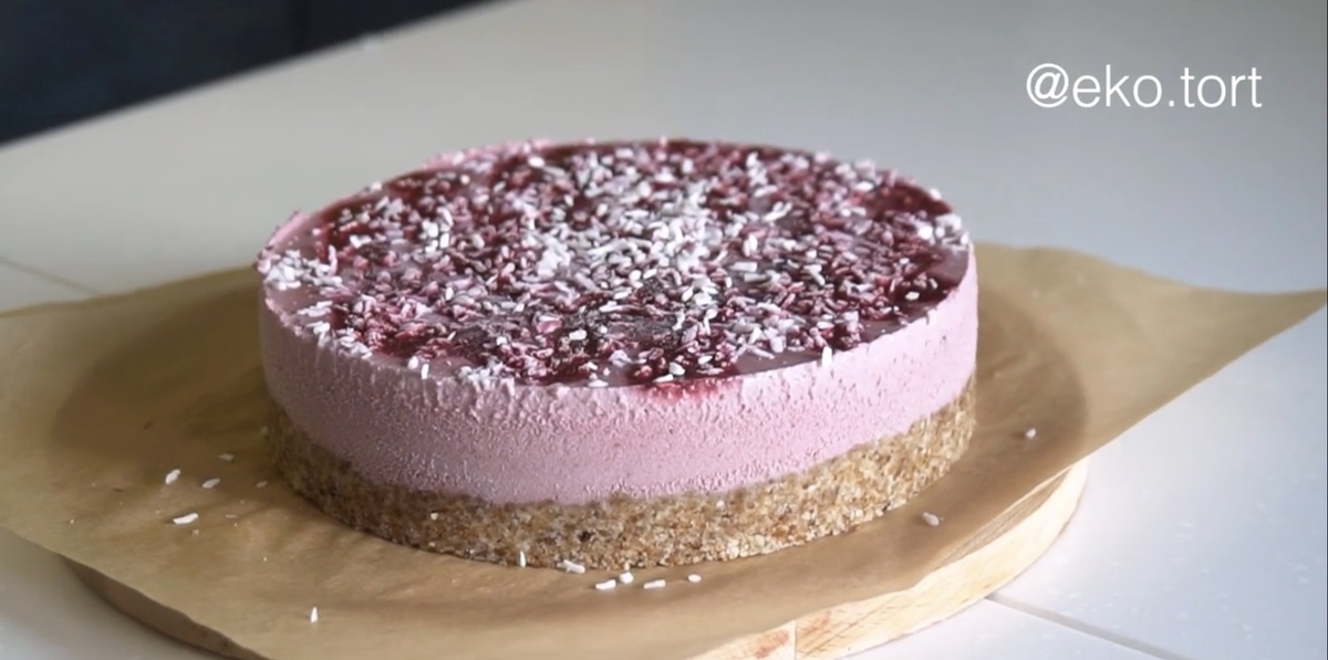 Основой этого торта служат орехи и ягоды. Для коржа и крема используются только натуральные компоненты: орехи, ягоды и сухофрукты. Для подслащивания можно применять сиропы топинамбура, агавы или кленовый сироп. А красота торта может быть придаётся свежими ягодами или даже съедобными цветами, всё зависит от вашего настроения!