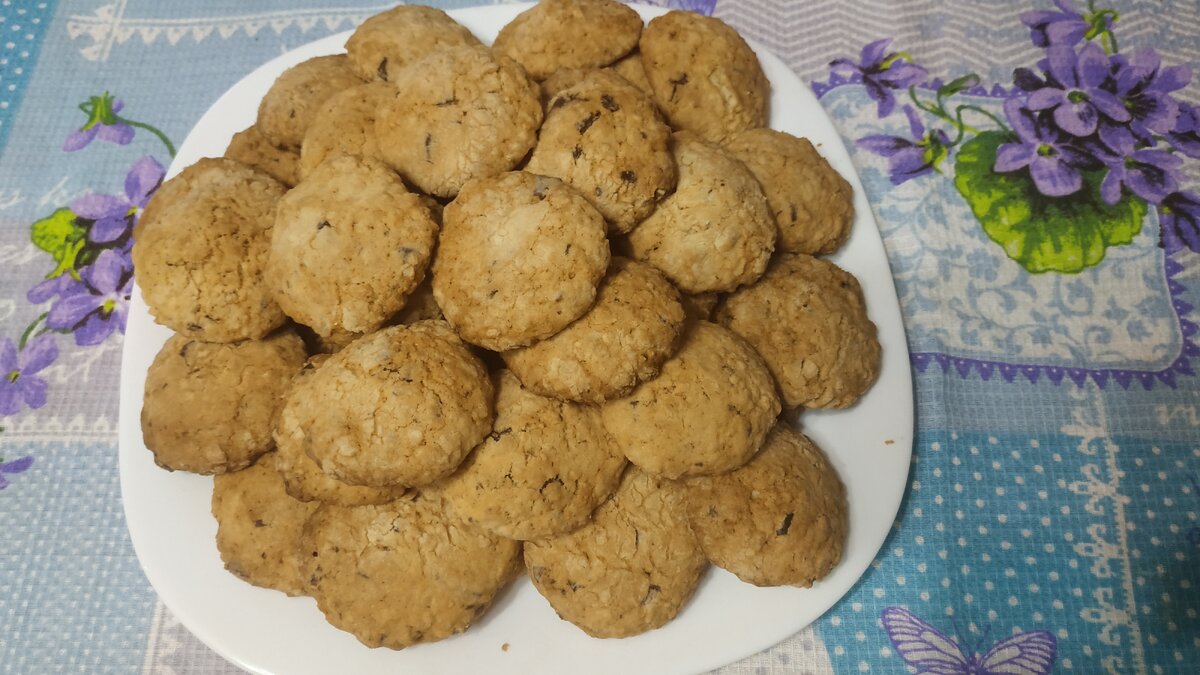 Используя большую ложку, сформировать колбаску из теста и нарезать на небольшие кусочки, затем лепить лепешечки руками. Выложить печенье на противень, предварительно застеленный пергаментом, смазанным подсолнечным маслом. Выпекать в разогретой до 250°C духовке в течение 10-12 минут. Общее время приготовления не превысит часа.