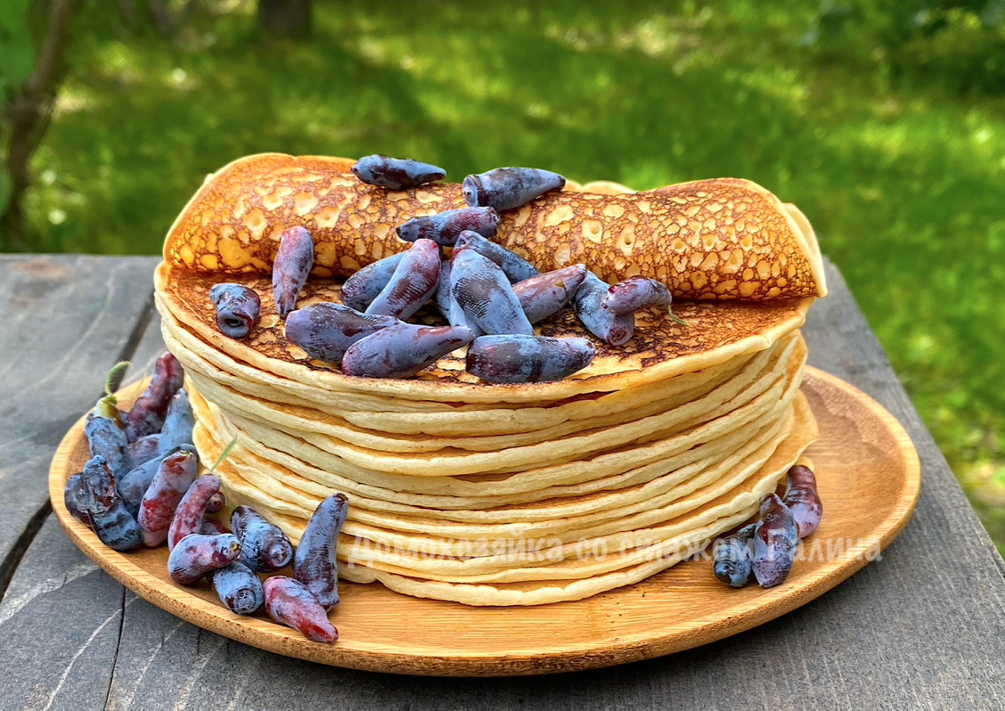 Не забудьте подать блины с ягодами жимолости, чтобы даже обычный десерт стал поистине волшебным.