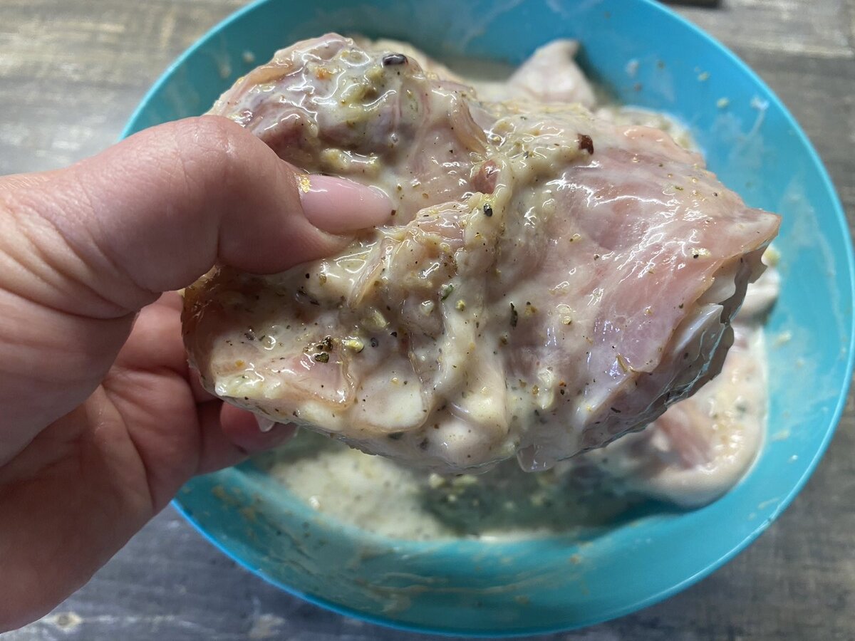 Следующим шагом будет заливка курицы кефиром — важно, чтобы мясо полностью погрузилось в маринад. Оставить курицу на 1-1,5 часа для пропитки.