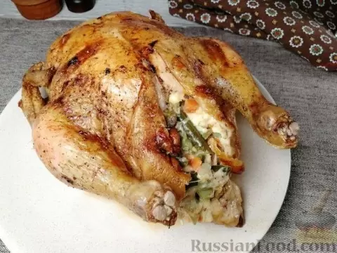 - Приготовление: начинка выкладывается на фарш, рулет формируется и запекается в фольге.