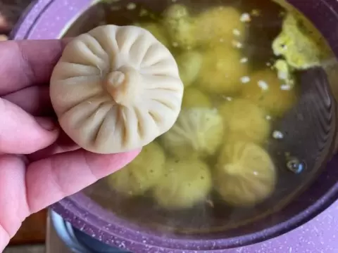 - Секрет сочности. Чтобы добиться того самого бульончика внутри, в каждый хинкали нужно добавить замороженный бульон. Это придаст легкую пикантность и сделает блюдо незабываемым.