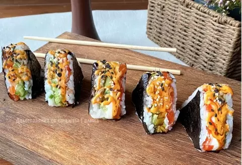 Как только онигири сформированы, можно использовать листья нори для обертывания, что, как правило, добавляет контрастный вкус и стильный внешний вид. Смешивание соусов, таких как спайси и унаги, сделает вкус еще более насыщенным. Экспериментирование с разными начинками и соусами позволит каждому создать уникальное лакомство, которое станет настоящим украшением любого стола.