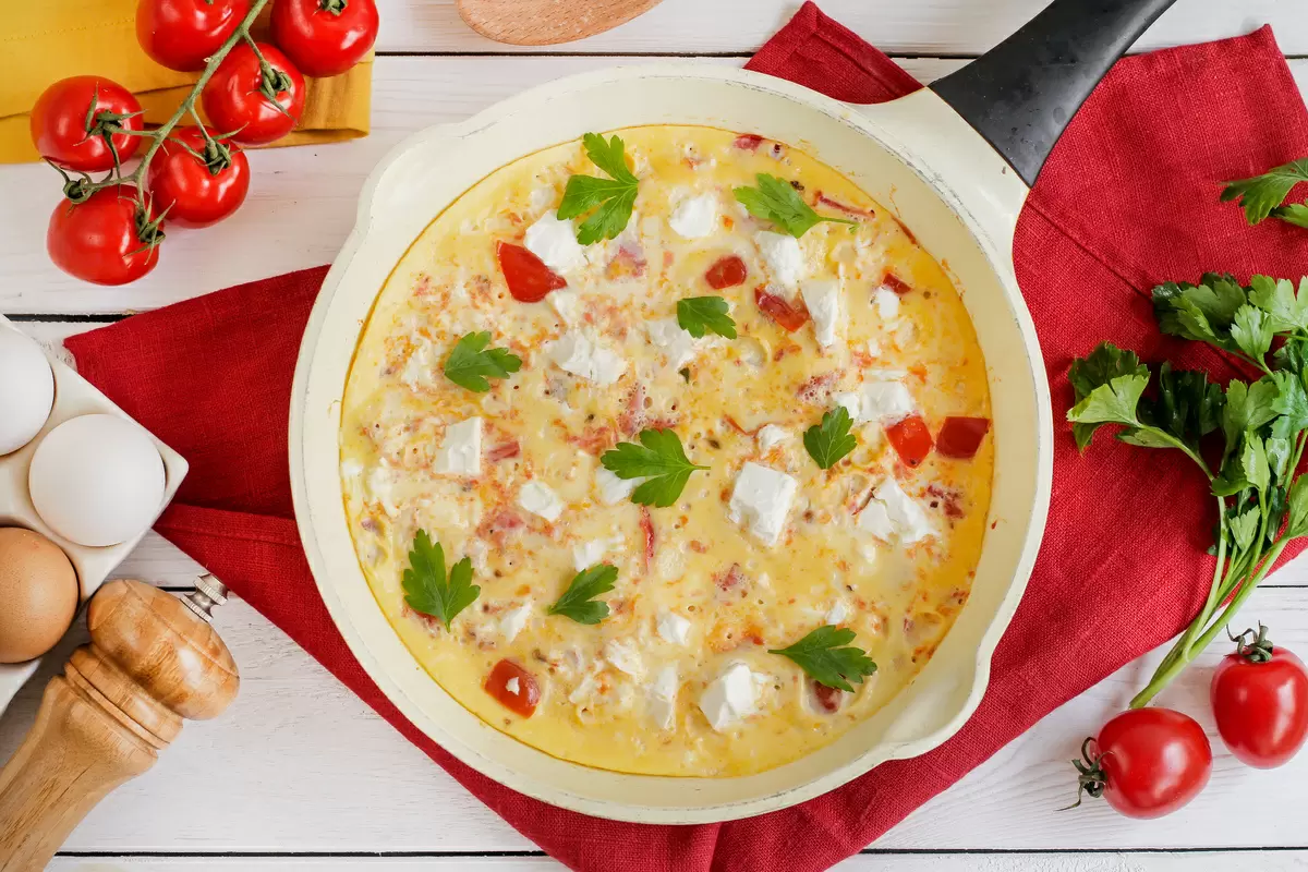 Готово! Этот болгарский омлет с брынзой и томатами станет отличным началом дня или сытным перекусом в любое время.