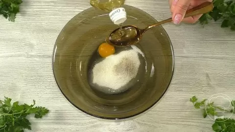 В глубокой миске соедините яйцо, сахар, ванильный сахар и щепотку соли, добавьте столовую ложку растительного масла. Тщательно перемешайте до получения однородной массы. Затем добавьте сметану и снова перемешайте.