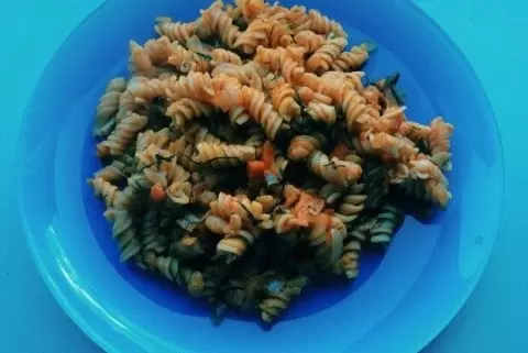 Проверьте готовность макарон и, если они уже готовы, слейте лишнюю воду. Смешайте овощную начинку с горячими макаронами и дайте им прогреться на огне еще 3–5 минут. В самом конце добавьте свежую зелень укропа и петрушки, которые придадут блюду свежесть и яркость.