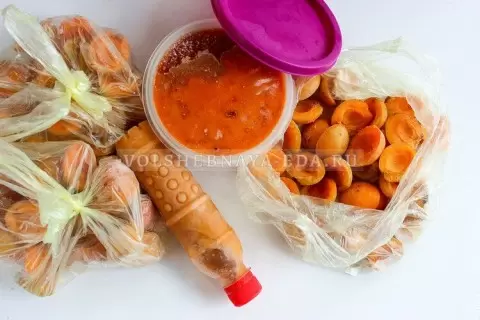 Третий способ очень похож на предыдущий, но с одной деталью – абрикосовое пюре разливается в бутылки. Сначала фрукты перемалываются с добавлением сахара до получения однородной консистенции. После этого полученное пюре отправляют замораживать в бутылках. Этот метод удобен для использования в качестве топинга для блинов или десертов, позволяя легко наливать нужное количество.