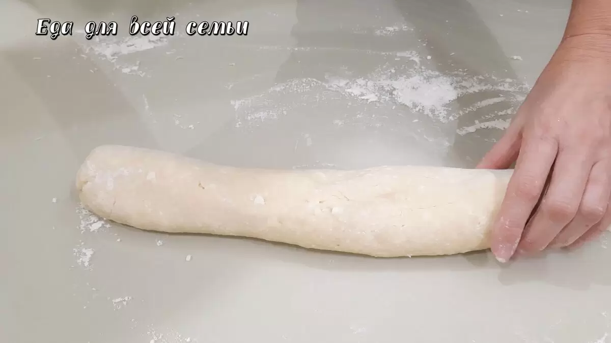 Шаг 1: Смешать все ингредиенты до получения однородного теста. Чтобы избежать излишней жесткости, не стоит добавлять слишком много муки. Получившееся тесто раскатать в колбаску.