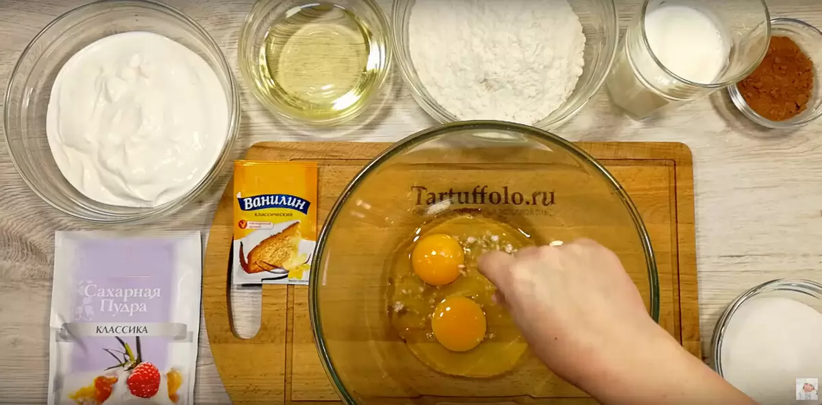 Для оригинальности половину теста можно отложить, а в оставшуюся добавить какао-порошок, перемешивая до получения однородного цвета.