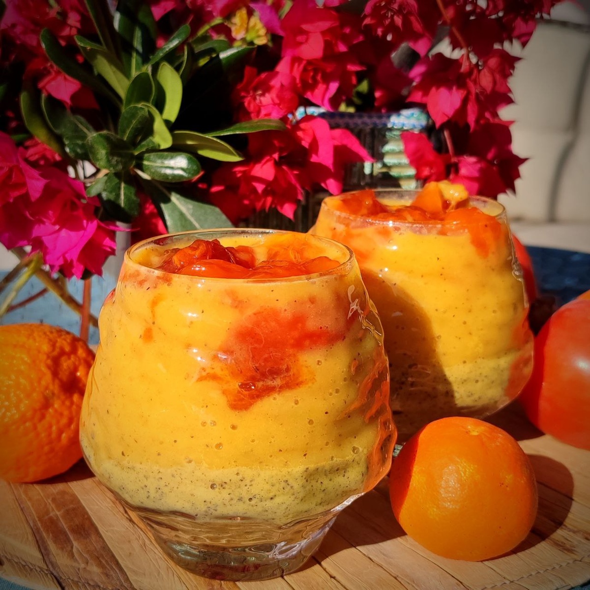 4. Завершающий штрих — добавить на верхний слой спелую хурму. Она должна быть мягкой и сладкой, чтобы гармонично завершить вкус смузи.